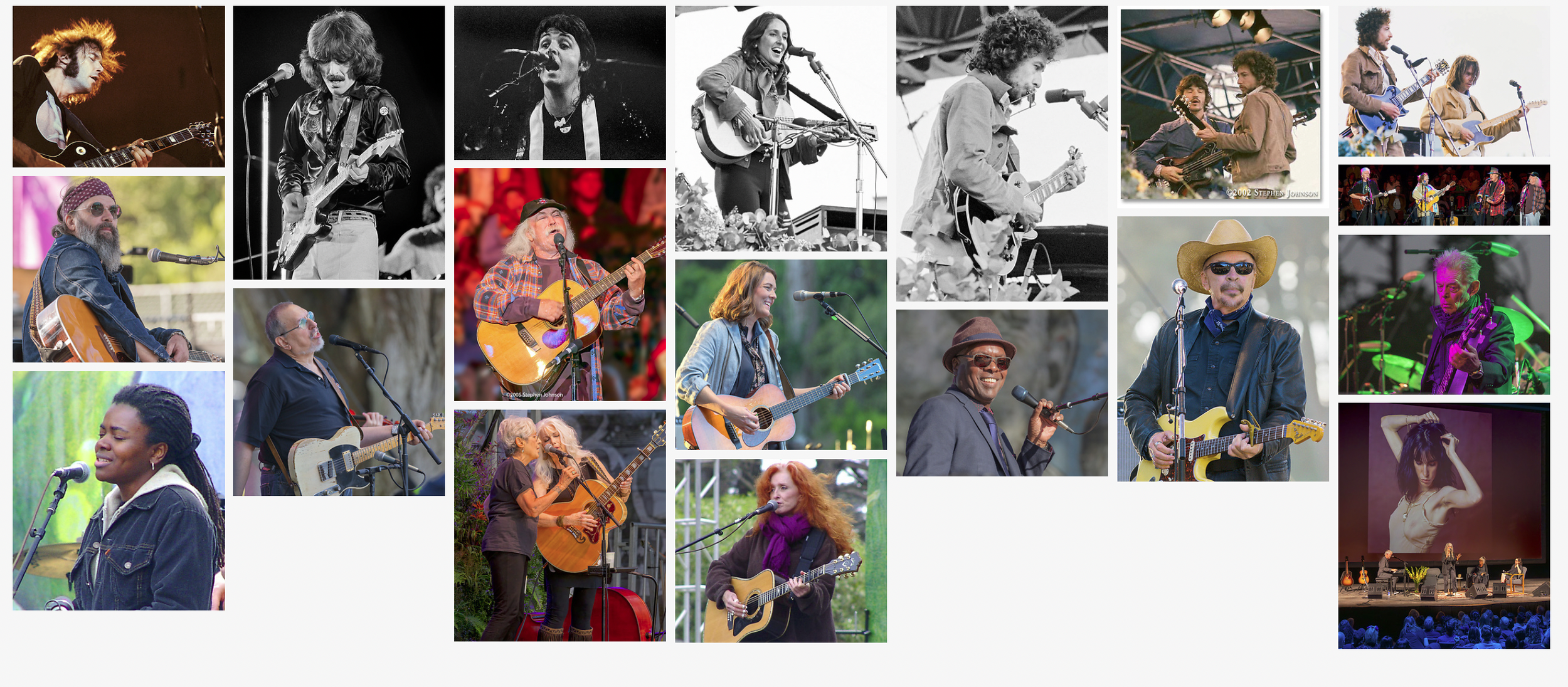 There is also a curious gap in my concert photography from 1978 to 2003. Although it became harder to bring cameras into concerts during the last of this period, the only explanation I can think of is that I got very busy with building family, home, and some big projects, from the At Mono Lake show, the The Great Central Valley, to With a New Eye: the Digital National Parks Project. This gap is also where the photographs switch from film to digital. All very curious to me.