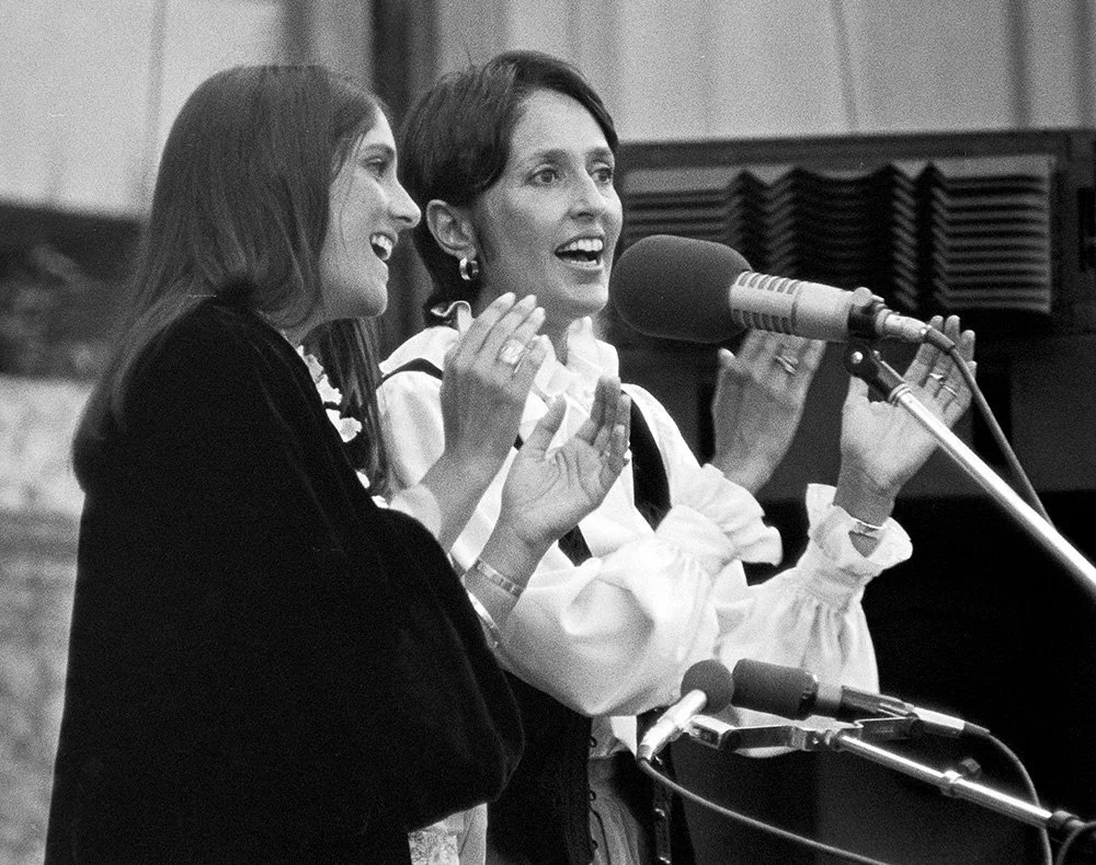 Mimi Farina and sister Joan Baez. Bread and Roses Festival. 1977.